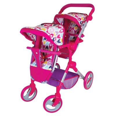 - Mommy Me Babyboo Twin Doll Stroller Foldable Deluxe Double Doll Pram with and. It features sturdy tires and a pretty heart-studded design. Badger Basket Folding Three Wheel Doll Jogging Stroller - PinkGingham - Fits American Girl My Life As Most 18 Dolls 27 44 out of 5 Stars.